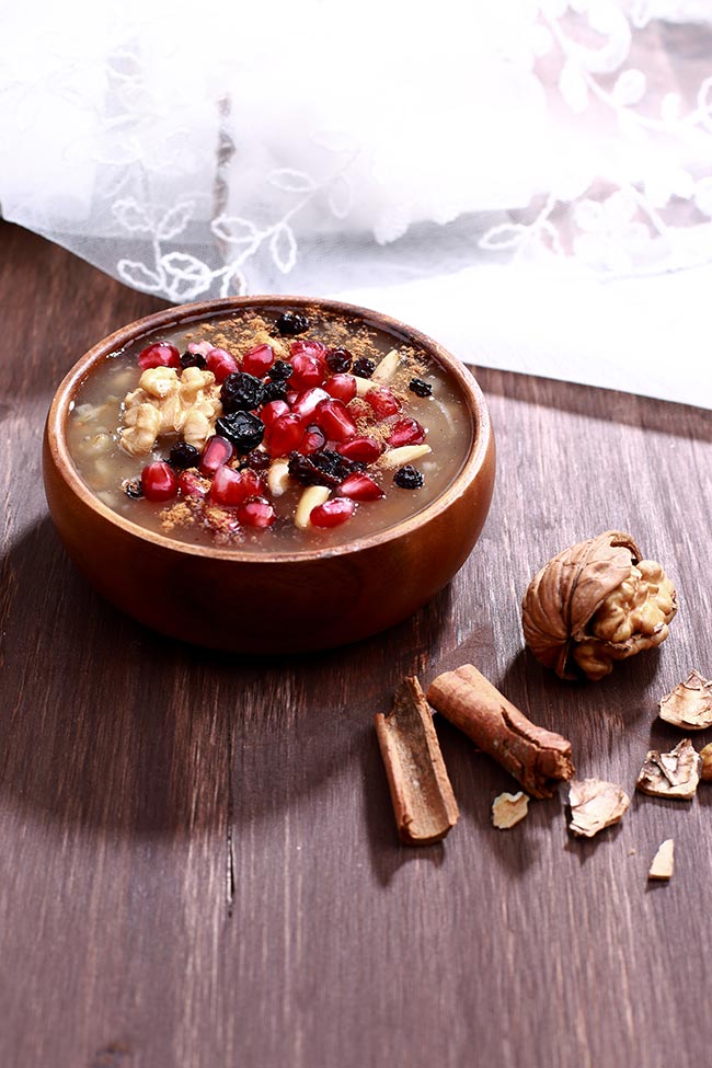 水がほとんど吸収されていることを確認したら、★を全て加え、お好みでローズウォーターまたはレモンとオレンジの皮を入れる。